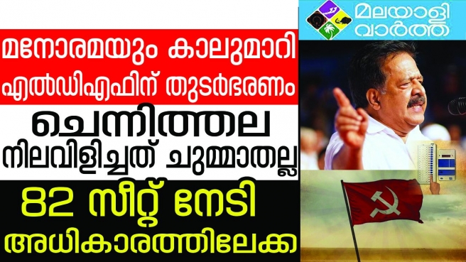 പ്രതിപക്ഷ നേതാവ് രമേശ് ചെന്നിത്തല ഭയന്നത് തന്നെ സംഭവിച്ചു. സംസ്ഥാനത്ത് എല്ഡിഎഫിന് തുടര്ഭരണം പ്രവചിച്ച് മനോരമ ന്യൂസ് വിഎംആര് അഭിപ്രായ സര്വേ. ഇതാദ്യമാണ് നടത്തിയ പത്തോളം സര്വേകള് ഒരുപോലെ ഭരണത്തുടര്ച്ച പറയുന്നത്.