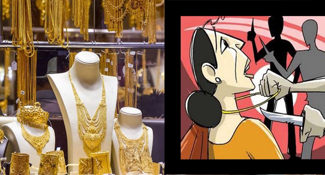 സ്വർണം വാങ്ങാനെന്ന വ്യാജേന ജ്വല്ലറിയിലെത്തിയ യുവാവ് മാലകൾ കവർന്ന് ഓടി രക്ഷപ്പെട്ടു. 36 ഗ്രാം തൂക്കമുള്ള 3 മാലകൾക്കും കൂടി 1,65,600 രൂപ വിലയുണ്ടെന്ന് ഉടമ അറിയിച്ചു.