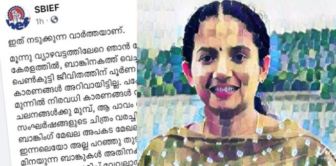 ബാങ്കിനകത്ത്, ഉലഞ്ഞാടി നിൽക്കുന്ന, ഉയിരു പറിച്ചെറിഞ്ഞ ആ ഷാൾ വെറുമൊരു പ്രതീകം മാത്രമല്ല, ആകരുത് ! അതൊരു ചോദ്യമാകണം; ഒന്നല്ല ഒരു നൂറ് ചോദ്യ ശരങ്ങൾ ഉയരണം, ഉയർത്തണം ! ധ്വംസനങ്ങളും ധാർഷ്ട്യങ്ങളും ശാസനകളും നിശ്ശബ്ദയാക്കിയ പ്രിയപ്പെട്ട മകളേ, നിന്നെ നിർബന്ധയാക്കിയ വേർപാടിൽ, കണ്ണീരോടെ അഞ്ജലികൾ തീർക്കട്ടെ...! വൈറലായി കുറിപ്പ്