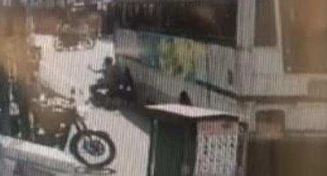 ബൈക്കിന് മുകളിലൂടെ ബസ് കയറി... ബൈക്ക് യാത്രികന് രക്ഷപെട്ടത് തലനാരിഴയ്ക്ക്