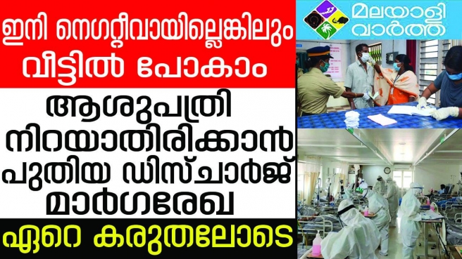 വീട്ടിലാണെങ്കിലും ആശുപത്രിപോലെ... സാരമായ പ്രശ്നങ്ങളില്ലെങ്കിലും ആശുപത്രിയില് കഴിയുന്ന കോവിഡ് രോഗികള്ക്ക് അനുഗ്രഹമായി സര്ക്കാരിന്റെ പുതിയ ഡിസ്ചാര്ജ് മാര്ഗരേഖ; രോഗലക്ഷണങ്ങളില്ലെങ്കില് മൂന്ന് ദിവസത്തിനകം ഡിസ്ചാര്ജ് ചെയ്ത് ഹോം ഐസൊലേഷനില് കഴിയാവുന്നതാണ്