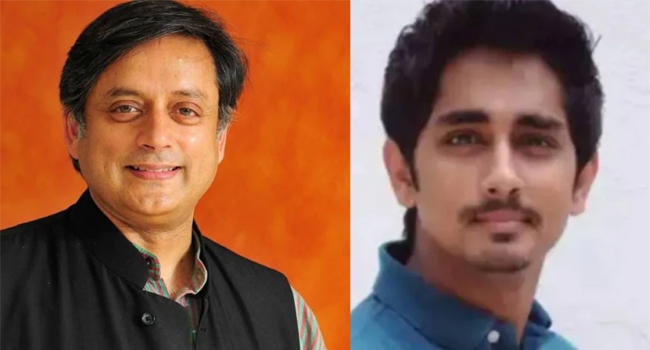 സിനിമയിലെ വില്ലന്മാരെക്കാൾ ഭീകരകാരികളാണ് ജീവിതത്തിലെ വില്ലന്മാർ; നടന് സിദ്ധാര്ഥിന് പിന്തുണയുമായി കോണ്ഗ്രസ് എം.പി ശശിതരൂർ