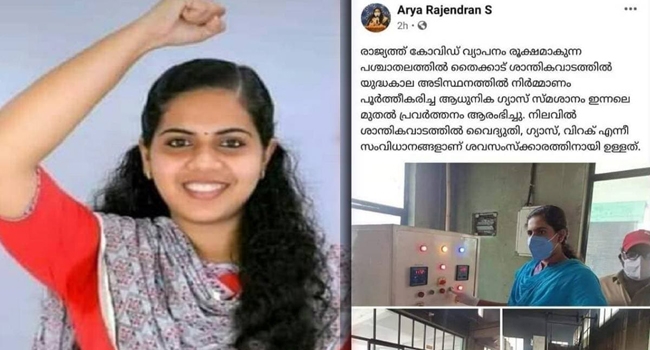 നിലവിൽ ശാന്തികവാടത്തിൽ വൈദ്യുതി, ഗ്യാസ്, വിറക് എന്നീ സംവിധാനങ്ങളാണു ശവസംസ്കാരത്തിനായി ഉള്ളത്’– ഇതായിരുന്നു മേയർ പങ്കുവച്ച പോസ്റ്റ്. ഇത്തരം കാര്യങ്ങൾ അതും കോവിഡ് രൂക്ഷമാകുന്ന സാഹചര്യത്തിൽ പോസ്റ്റിട്ടു വികസന നേട്ടമായി ചൂണ്ടിക്കാണിച്ച മേയറുടെ നടപടിയാണു വിമർശിക്കപ്പെട്ടത്.