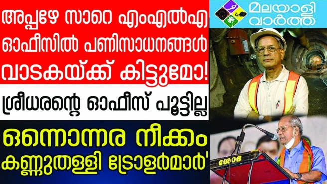 രാജ്യത്തിന് അഭിമാനമായ മെട്രോമാന് ഇ ശ്രീധരന്റെ തോല്വി കേരളത്തിലെ എതിര്പക്ഷം ആഘോഷിക്കുകയാണ്. തെരഞ്ഞെടുപ്പിന് മുമ്പ് ഇ ശ്രീധരന് തുറന്ന എംഎല്എ ഓഫീസാണ് ട്രോളിന് കാരണം. ശ്രീധരന് തോറ്റതോടെ സോഷ്യല് മീഡിയയില് വലിയ പ്രചാരണമാണ് നടക്കുന്നത്.