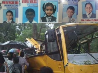 കോതമംഗലം, അടിമാലി റൂട്ടില് നെല്ലിമറ്റം കോളനിപ്പടിക്കു സമീപം സ്കൂള് ബസിനു മുകളില് മരം വീണു അഞ്ചു കുട്ടികള് മരിച്ചു. കൃഷ്ണേന്ദു ( അഞ്ച്) ജോഹന്(13) ഗൗരി (9) അമീര് ജാഫര്, ഇഷാ സാറ എന്നീ വിദ്യാര്ഥികളാണ് മരിച്ചത്. കോതമംഗലം കറുകിടം വിദ്യാവികാസ് സ്കൂളിലെ ബസാണ് അപകടത്തില്പ്പെട്ടത്.