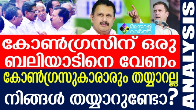 കോണ്ഗ്രസിന് ഒരു ബലിയാടിനെ വേണം കോണ്ഗ്രസുകാരാരും തയ്യാറല്ല നിങ്ങള് തയ്യാറുണ്ടോ?