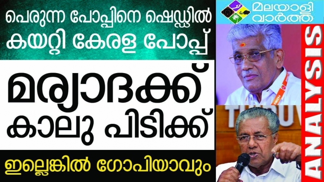 പെരുന്ന പോപ്പിനെ ഷെഡ്ഡില് കയറ്റി കേരള പോപ്പ് മര്യാദക്ക് കാലു പിടിക്ക് ഇല്ലെങ്കില് ഗോപിയാവും!