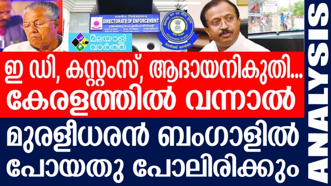 ഇ ഡി,കസ്റ്റംസ്, ആദായനികുതി... കേരളത്തില് വന്നാല് മുരളീധരന് ബംഗാളില് പോയതു പോലിരിക്കും