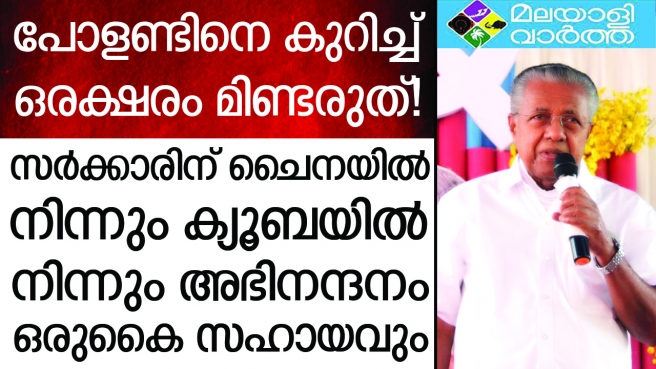 ചരിത്രത്തിലാദ്യമായി സംസ്ഥാനത്ത് ഒരു കമ്മ്യൂണിസ്റ്റ് പാര്ട്ടി തുടര്ഭരണം നേടിയ വാര്ത്ത വൈകിയാണെങ്കിലും ചെനയും മറ്റ് ചില കമ്മ്യൂണിസ്റ്റാ രാജ്യങ്ങളും അറിഞ്ഞു. ഇതോടെ എല്ഡിഎഫ് സര്ക്കാരിന് വിദേശ രാജ്യങ്ങളില് നിന്നും അഭിനന്ദന പ്രവാഹമാണ്.