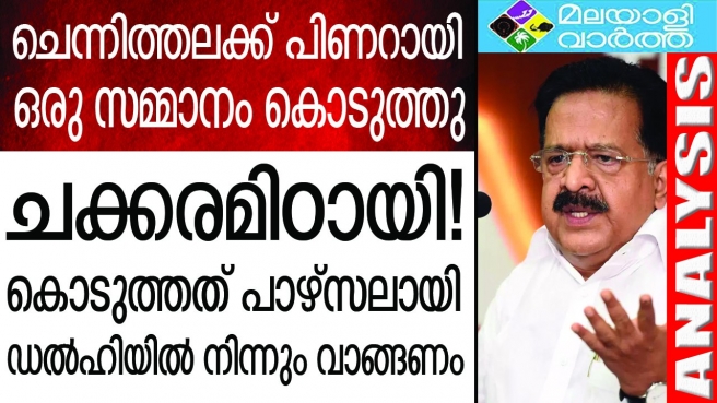 രമേശ് ചെന്നിത്തല പ്രതിപക്ഷ നേതാവാകാനുള്ള സാധ്യതകള് അടയുന്നു ... കഴിഞ്ഞ അഞ്ചു കൊല്ലം തന്നെയും തന്റെ സര്ക്കാരിനെയും പ്രതിസന്ധിയിലാക്കുന്ന തരത്തില് ആരോപണങ്ങള് ഉന്നയിച്ച് ബുദ്ധിമുട്ടിച്ച ചെന്നിത്തലക്ക് ഒരു സമ്മാനം കൊടുത്ത് പിണറായി