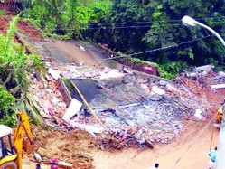വന്ദുരന്തം ഒഴിവായത് തലനാരിഴക്ക്: മൂവാറ്റുപുഴയില് മലയിടിഞ്ഞ് മൂന്നുനില കെട്ടിടം തകര്ന്നടിഞ്ഞു