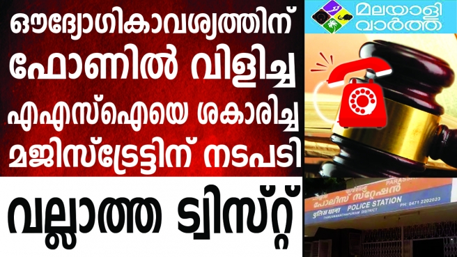 ഒട്ടും പ്രതീക്ഷിച്ചില്ല... ഔദ്യോഗികാവശ്യത്തിന് ഫോണില് വിളിച്ച എഎസ്ഐയെ ശകാരിച്ച സംഭവം വിവാദമായതോടെ നടപടി; എഎസ്ഐയെ ശകാരിച്ച സംഭവത്തിനു പിന്നാലെ വനിതാ മജിസ്ട്രേട്ടിനെ സ്ഥലം മാറ്റി; നടപടി ഹൈക്കോടതി നിര്ദേശപ്രകാരം