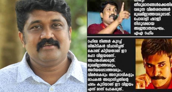 "വല്ലാതെ അഹങ്കരിക്കരുത് റഹിമേ"!; സിപിഐഎം നേതാവ് എ എ റഹീമിനെതിരെ തിരിഞ്ഞുകൊത്തി പോരാളി ഷാജി; വിമർശനം പോരാളി ഷാജി നിഗൂഢമായ അജ്ഞാത സംഘമാണെന്ന നേതാവിന്റെ പരാമർശത്തിൽ