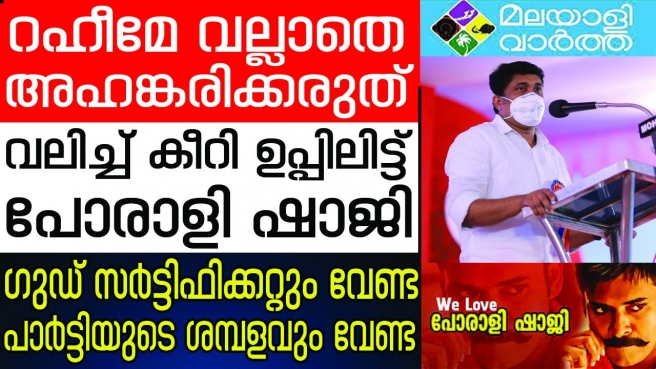 ഇത്രയും പ്രതീക്ഷിച്ചില്ല... സിപിഎമ്മിന്റെ മുന്നില് നിന്നും ആക്രമിക്കുന്ന പോരാളി ഷാജിമാര് കാലുമാറുന്നു; പോരാളി ഷാജിയെ വിമര്ശിച്ച റഹീമിന് തക്ക മറുപടി; വല്ലാതെ അഹങ്കരിക്കരുത്, റഹീമിന്റെ ഗുഡ് സര്ട്ടിഫിക്കറ്റും പാര്ട്ടിയുടെ ശമ്പളവും വേണ്ട; എല്ലാ ഏമാന്മാരും സ.. സ.. സ മൂളി രണ്ട് സ്റ്റേറ്റിലെ ഇടത് പക്ഷത്തിന്റെ പതിനാറടിയന്തിരം നടത്തിയിട്ടുണ്ടല്ലോ...