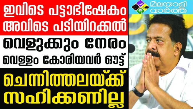 എങ്ങനെ സഹിക്കാന് കഴിയും. മുഖ്യമന്ത്രി പദം മോഹിച്ച് ഉച്ചതോറും പത്രസമ്മേളനം നടത്തി വെളുക്കും നേരം വരെ വെള്ളം കോരി. പക്ഷെ ജനങ്ങള് എല്ഡിഎഫിനാണ് തുടര്ഭരണം നല്കിയത്. നിര്ഭാഗ്യവശാല് പ്രതിപക്ഷ നേതാവിന്റെ സ്ഥാനം പോലും രമേശ് ചെന്നിത്തലയ്ക്ക് ലഭിക്കില്ല. അതായത് പിണറായിയുടെ പട്ടാഭിഷേകം നടക്കുമ്പോള് ചെന്നിത്തല പടിയിറങ്ങും.
