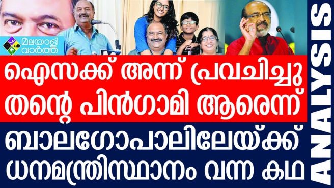 അതിനു ശേഷം ബാലഗോപാലിന് രാജ്യസഭാ അംഗത്വം നല്കിയതും പിണറായി തന്നെ. എന്നാല് അതൊന്നുമല്ല ബാലഗോപാലിന്റെ ധനമന്ത്രി പദവിക്ക് പിന്നിലുള്ളത്. അത് തോമസ് ഐസക്കുമായി ബന്ധപ്പെട്ടിരിക്കുന്നു.