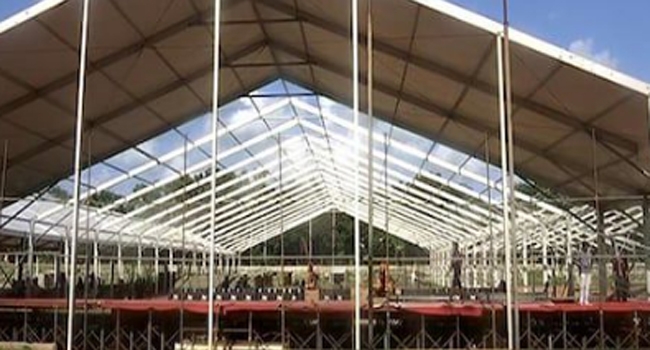 സത്യപ്രതിജ്ഞയ്ക്കായി കെട്ടിപ്പൊക്കിയ എണ്പതിനായിരം സ്ക്വയര് ഫീറ്റ് വിസ്താരമുള്ള കൂറ്റന് പന്തലിന് അയ്യായിരം പേരെ വരെ ഉള്ക്കൊള്ളാന് കഴിയുമെന്നാണ് അറിയുന്നത്. സ്റ്റേഡിയത്തില് തല്ക്കാലം കായിക പരിപാടികള് ഒന്നും ഇല്ലാത്തതിനാല് ഈ പന്തല് തല്ക്കാലം പൊളിച്ചു കളയരുത്.