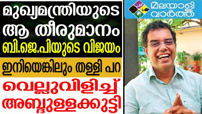 ന്യൂനപക്ഷ വകുപ്പ് മുഖ്യമന്ത്രി തിരിച്ചെടുത്തത് കേരളത്തിലെ പരാജയപ്പെട്ട ബിജെപി -എൻഡിഎ മുന്നണിയുടെ വിജയം: ഇനിയെങ്കിലും മുഖ്യമന്ത്രി കെ ടി ജലീലിനെ തള്ളിപ്പറയണം: വെല്ലുവിളിച്ച് അബ്ദുള്ളക്കുട്ടി