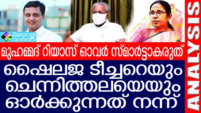 മുഹമ്മദ് റിയാസ് , ഓവര് സ്മാര്ട്ടാകരുത് ഷൈലജ ടീച്ചറെയും ചെന്നിത്തലയെയും ഓര്ക്കുന്നത് നന്ന്