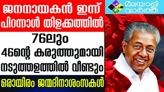 ചരിത്രമെഴുതിയ തിളക്കമാര്ന്ന തുടര്വിജയത്തിന്റെ നായകന് മുഖ്യമന്ത്രി പിണറായി വിജയന് ഇന്ന് 76 ാം പിറന്നാളാണ്. പതിനഞ്ചാം നിയമസഭയുടെ ആദ്യ സമ്മേളനത്തിന്റെ ആദ്യ ദിനമായ ഇന്ന് ആഹ്ലാദങ്ങളുടെയും അഭിനന്ദനങ്ങളുടെയും നടുത്തളത്തിലാകും അദ്ദേഹം. പിണറായി വിജയന് ആദ്യമായി മുഖ്യമന്ത്രിയായത് 2016 മേയ് 25നാണ്. അതിന്റെ തലേന്ന് പത്രസമ്മേളനത്തിലാണ് തന്റെ യഥാര്ഥ ജനനത്തീയതി ഒരു സസ്പെന്സ് പോലെ അദ്ദേഹം പുറത്തുപറഞ്ഞത്. ഔദ്യോഗിക രേഖകളില് മാര്ച്ച് 21 ആണ് ജന്മദിനം.