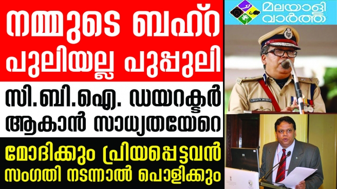 അത്രയൊക്കെ പറ്റുമോ... സിബിഐ ഡയറക്ടറുടെ അന്തിമ പട്ടികയില് ലോക്നാഥ് ബെഹ്റയും; സി.ബി.ഐ. ഡയറക്ടറെ ഇന്നറിയാം; കേന്ദ്ര അന്വേഷണ ഏജന്സികളില് മുന്പരിചയമുള്ള മൂന്ന് മുതിര്ന്ന ഐ.പി.എസ്. ഉദ്യോഗസ്ഥരുടെ പട്ടികയില് നിന്നാണ് തെരഞ്ഞെടുപ്പ്