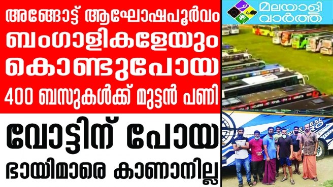 എങ്കിലുമെന്റെ ബംഗാളേ... അതിഥി തൊഴിലാളികളെ വോട്ട് ചെയ്യിപ്പിക്കാനായി സന്തോഷപൂര്വം ബംഗാളിലും അസമിലും പോയ 400 കേരള ബസുകള് വെട്ടില്; 40 ദിവസമായി അസമിലും ബംഗാളിലുമായി കുടുങ്ങി മലയാളി ബസ് ജീവനക്കാര്; ലോക് ഡൗണ് നീളുന്നതിനാല് ബസുകളുടെ മടക്കയാത്രയില് അനിശ്ചിതത്വം തുടരുന്നു