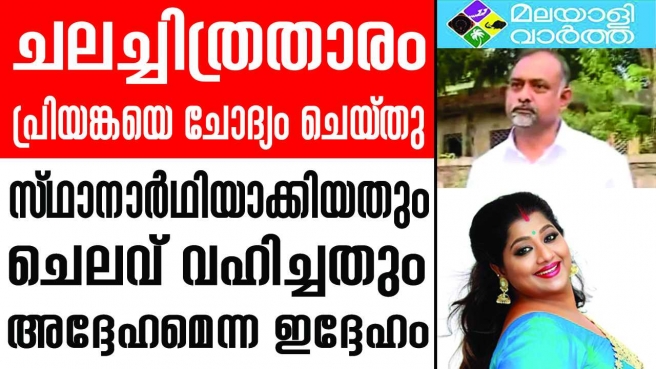 അതാരുമറിഞ്ഞില്ല... ഇഎംസിസി ബോംബാക്രമണ കേസില് നടി പ്രിയങ്കയെ പോലീസ് ചോദ്യം ചെയ്തു; സ്ഥാനാര്ഥിയാക്കിയതും ചെലവ് വഹിച്ചതും ദല്ലാള് നന്ദകുമാറെന്ന് പ്രിയങ്കയുടെ മൊഴി; തെരഞ്ഞെടുപ്പിന്റെ സാമ്പത്തിക സ്രോതസിനെപ്പറ്റിയാണ് മുഖ്യമായും അന്വേഷിക്കുന്നത്