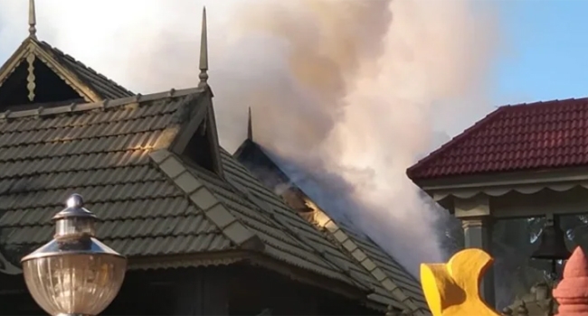 രാവിലെ ഏഴ് മണിയോടെയായിരുന്നു തീപിടിത്തമുണ്ടായത്. തടിയില് നിര്മിച്ച മേല്ക്കൂരയിലേക്ക് തീ പടരുകയും മേല്ക്കൂര കത്തി നശിക്കുകയും ചെയ്തതായാണ് റിപ്പോര്ട്ട്. പ്രതിഷ്ഠയ്ക്ക് കേടുപാടുകള് സംഭവിച്ചിട്ടില്ല.