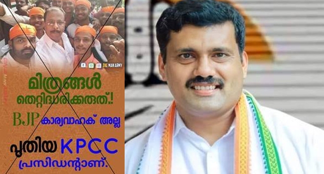 യൂത്ത് കോണ്ഗ്രസ്സ് പ്രവര്ത്തകര് തലയില് അണിഞ്ഞ കോണ്ഗ്രസ്സിന്്റെ ത്രിവര്ണ്ണ പതാകയിലുള്ള കുങ്കുമ നിറത്തെ കാവിയാക്കി ചിത്രീകരിച്ച് പ്രവര്ത്തകരുടെ കൂടെ സെല്ഫിയെടുത്ത KPCC അദ്ധ്യക്ഷന് ശ്രി കെ സുധാകരനെ സംഘിയാക്കുന്ന പണിയാണ് സൈബര് കമ്മികള് ഇപ്പോള് പ്രചരിപ്പിക്കുന്നത്.