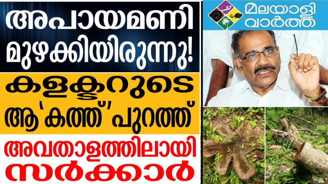 ഡിസംബറിലാണ് കളക്ടര് സര്ക്കാരിന് കത്തു നല്കിയത്. കളക്ടര് നല്കിയ കത്തിന്റെ പകര്പ്പാണ് സര്ക്കാറിനെ അവതാളത്തിലാക്കി ഇപ്പോള് പുറത്തുവന്നിരിക്കുന്നത്. ഈ കത്ത് വളരെയധികം നിര്ണായകമാകും ഇപ്പോഴത്തെ വനംമന്ത്രി എ കെ ശശീന്ദ്രന്റെ പരാമര്ശങ്ങളില് സി പി ഐയ്ക്ക് കടുത്ത ദേഷ്യമാണുള്ളത് .