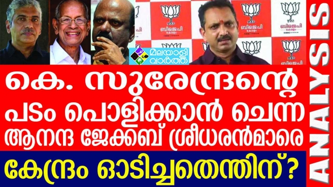 കെ. സുരേന്ദ്രന്റെ പടം പൊളിക്കുമെന്ന് പറഞ്ഞ സി. വി. ആനന്ദബോസും ജേക്കബ് തോമസും ഇ ശ്രീധരനും കേന്ദ്ര ബി ജെ പി നേതൃത്വത്തെ ഭയന്ന് കണ്ടം വഴിയോടി. ബി ജെ പിയുടെ കേരളത്തിലെ തോൽവിയെ കുറിച്ച് പഠിക്കാൻ പ്രധാനമന്ത്രി നരേന്ദ്രമോദി പറഞ്ഞിട്ടാണെന്ന് അവകാശപ്പെട്ട് സ്വയം അവരോധിത അന്വേഷണ കമ്മിഷനായി മാറിയ ആനന്ദ ജേക്കബ് ശ്രീധരൻമാരെയാണ് ബി ജെ പിയുടെ കേന്ദ്ര നേതൃത്വം തള്ളിപറഞ്ഞത്.