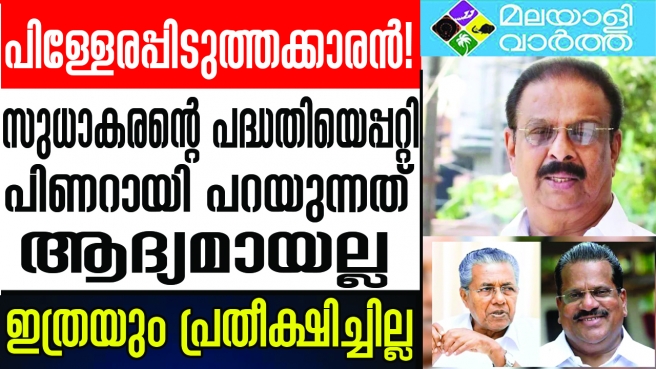 പണ്ടൊക്കെ മലയാളികള് ഏറെ പേടിയോടെ കേട്ട ഒന്നാണ് പിള്ളേരപ്പിടുത്തക്കാരന്. സ്കൂളില് പഠിച്ചിരുന്ന കുട്ടികള് വളരെ പേടിയോടെയാണ് പിള്ളേരെപ്പിടുത്തക്കാരുടെ കഥകള് കേട്ടിരുന്നത്. എന്നാല് മുഖ്യമന്ത്രി പിണറായി വിജയന് തന്റെ മക്കളെ തട്ടിക്കൊണ്ട് പോകാന് പദ്ധതിയിട്ട പിള്ളേരപ്പിടുത്തക്കാരനെ പരിചയപ്പെടുത്തിയപ്പോള് കണ്ട് ജനം കണ്ണു തള്ളി.