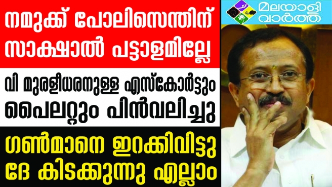 മുഖ്യമന്ത്രി പിണറായി വിജയനും കെപിസിസി പ്രസിഡന്റ് കെ. സുധാകരനും തമ്മിലുള്ള വാക് പയറ്റിനിടെ തലസ്ഥാനത്ത് ഇന്നലെ സുപ്രധാനമായ സംഭവം നടന്നു. കേന്ദ്രമന്ത്രി വി. മുരളീധരനു നല്കിയിരുന്ന സുരക്ഷാ എസ്കോര്ട്ടും പൈലറ്റ് വാഹനവും സംസ്ഥാന സര്ക്കാര് പിന്വലിച്ചു. ഇന്നലെ ഉച്ചയ്ക്ക് 12 ന് തിരുവനന്തപുരം വിമാനത്താവളത്തില് ഇറങ്ങിയ കേന്ദ്രമന്ത്രിക്ക് ഇതു രണ്ടും നല്കിയില്ല. ഗണ്മാനെ മാത്രമാണു വിട്ടുനല്കിയത്.