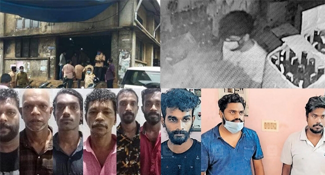 2021 മെയ് മാസത്തിലാണ് മദ്യക്കവര്ച്ച നടന്നത്. വെല്ഡിംഗ് ജോലികള് അറിയാവുന്ന മെബിനും കിരണും മേല്ക്കൂരയില് കയറി റൂഫ് ഷീറ്റ് നട്ടിളക്കി ബിവറേജസ് ഗോഡൗണിനുള്ളില് കടന്ന് മദ്യം മോഷ്ടിച്ച് പുറത്തു കടത്തുകയായിരുന്നു. ഒരാള് പുറത്തിറങ്ങിയ ശേഷം മദ്യക്കുപ്പികളടങ്ങിയ പെട്ടികള് പുറത്തേക്ക് കൊടുത്തു. മോഷണത്തിന് ശേഷം ഷീറ്റുകള് നട്ടിട്ട് ഉറപ്പിക്കുകയും ചെയ്തു. 8 ദിവസങ്ങളിലായാണ് കവര്ച്ച നടന്നതെന്ന് ഗോഡൗണിലെ സിസിടിവി ഫൂട്ടേജില് നിന്ന് വ്യക്തമായി.