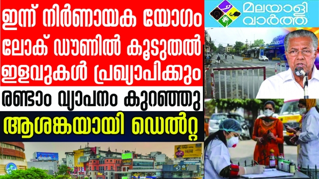 കരുതലോടെ കേരളം... സംസ്ഥാനത്ത് കോവിഡ് രണ്ടാം വ്യാപനം കുറഞ്ഞ സാഹചര്യത്തില് ലോക് ഡൗണില് കൂടുതല് ഇളവുകള് പ്രഖ്യാപിക്കും; മുഖ്യമന്ത്രിയുടെ നേതൃത്വത്തില് ഇന്ന് അവലോകന യോഗം; ആശങ്കയായി ഡെല്റ്റ പ്ലസ് വൈറസുകള്