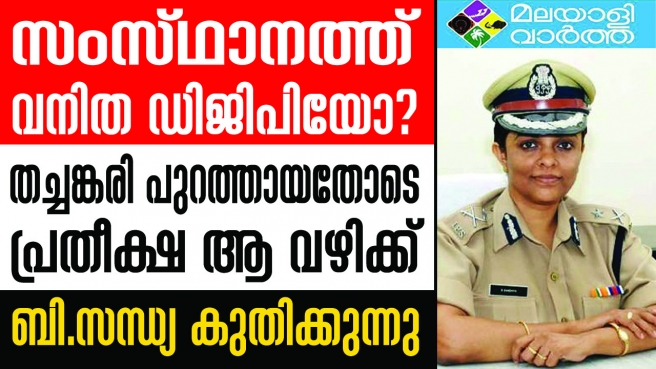 സംസ്ഥാനത്ത് ഒരു വനിത ഡിജിപി വരുമോയെന്ന ധ്വനിയാണ് ഇപ്പോള് ഉയരുന്നത്. സ്ത്രീ പീഡന കേസുകള് വല്ലാതെ ചര്ച്ചയാകുന്ന ഈ കാലത്ത് ഒരു വനിത തന്നെ പോലീസ് മേധാവിയായി എത്തുന്നത് പലരും പ്രതീക്ഷിക്കുന്നുണ്ട്. എന്നാല് തീരുമാനം ഇപ്പോഴും ആയിട്ടില്ല. 3 പേരുടെ പട്ടികയില് ബി സന്ധ്യകൂടി ഉള്പ്പെട്ടതോടെയാണ് ചര്ച്ച ആ വഴിക്കായത്.
