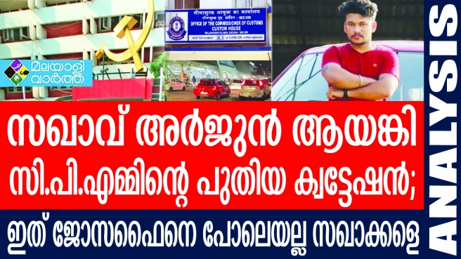എന്തു ചോദിച്ചാലും തനിക്ക് പാര്ട്ടിയുണ്ടെന്ന് അവകാശപ്പെടുന്ന അര്ജൂന് ആയങ്കി കഴിഞ്ഞ നാല് വര്ഷത്തിനിടെ നടത്തിയത് കോടികളുടെ പിടിച്ചുപറിയാണെന്ന് പോലീസും കസ്റ്റംസും കണ്ടെത്തി കഴിഞ്ഞു. കണ്ണൂരില് ഇടതു സര്ക്കാര് വിമാനത്താവളം സ്ഥാപിച്ചതു പോലും അര്ജുന് ആയങ്കിയെ പോലുള്ളവര്ക്ക് അടിത്തറയുണ്ടാക്കി നല്കാനാണെന്ന് പറഞ്ഞ് കസ്റ്റംസും ബിജെപിയും പൊട്ടിപൊട്ടി ചിരിക്കുന്നു.
