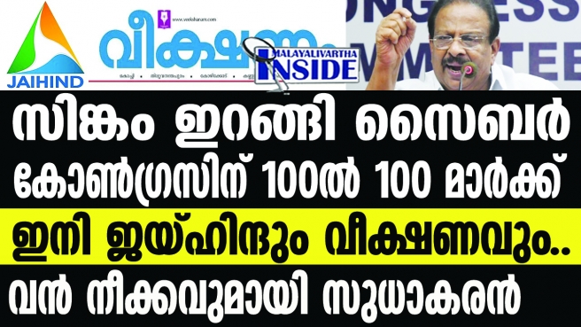 സിങ്കം ഇറങ്ങി സൈബര്കോണ്ഗ്രസിന് 100ല് 100 മാര്ക്ക് ഇനി ജയ്ഹിന്ദും വീക്ഷണവും; കോണ്ഗ്രസ് ചാനലിന് പറയാനുള്ളത് വർഷങ്ങളൾ നീണ്ട കടബാധ്യതയുടെ കഥ; കണക്കില്ലാതെ ഇനി പണം കൊടുക്കില്ല;അടിമുടി അഴിച്ചു പണിയാനൊരുങ്ങി സുധാകരൻ