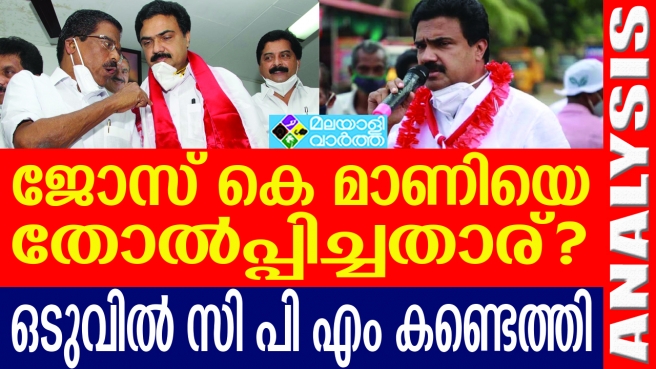 ജോസ് കെ മാണിയെ തോല്പ്പിച്ചതാര്? ജോസ് കെ മാണി തോല്ക്കാന് കാരണം സി പി ഐയും അവര് വിലയ്ക്കെടുത്ത ചില സി പി എം പ്രാദേശിക നേതാക്കളുമാണെന്ന് സിപി എം സംസ്ഥാന കമ്മിറ്റിയില് നിരീക്ഷണം
