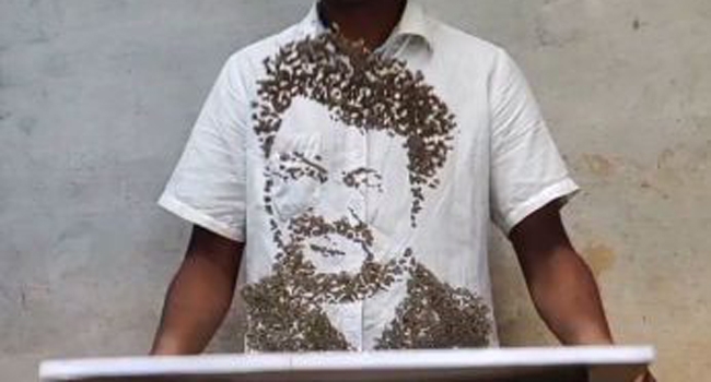 കോറോം ഗവ. ഹയര്സെക്കന്ഡറി സ്കൂളില് നിന്നു പ്ലസ് ടു പൂര്ത്തിയാക്കിയ രോഹിത്താണ് ഈ തന്റെ അപൂര്വ കഴിവു കൊണ്ട് ഞെട്ടിക്കുന്നത്. ഡ്രോയിങ് ബോര്ഡില് പല വലിപ്പത്തിലുള്ള കല്ലുകള് നിരത്തി മോഹന്ലാലിന്റെ മുഖം വരച്ച ശേഷം ബോര്ഡിലെ കല്ലുകള് മെല്ലെ മുകളിലേക്ക് ഇടുകയാണ് ചെയ്യുന്നത്. സാധാരണയായി മുറംകൊണ്ട് അരിയും മറ്റും വൃത്തിയാക്കാന് ചെയ്യുന്നതുപോലെ ഒരു പ്രത്യേക ആംഗിളിലാണു കല്ലുകള് മുകളിലേക്ക് ഇടുന്നത്. വായുവില് ഉയരുന്ന കല്ലുകള് അഞ്ചോ ആറോ സെക്കന്ഡുകള്ക്കകം ബോര്ഡിലേക്കു തിരികെവീഴും. ഇത്രയും സമയമാണ് ചിത്രത്തിന്റെ ആയുസ്സ്.