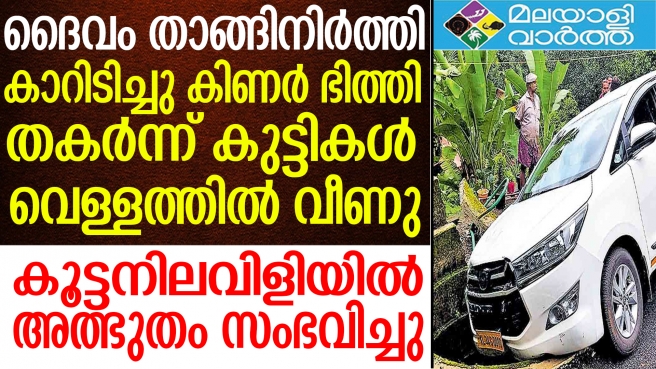 ഇതുപോലെ അദ്ഭുതകരമായ ആ രക്ഷപ്പെടലിന്റെ വലിയ ആശ്വാസത്തിലാണ് ഒരു കുടുംബം. വീട്ടുമുറ്റത്തെ പോര്ച്ചില്നിന്നു പുറത്തേക്കെടുത്ത കാര് നിയന്ത്രണം വിട്ട് കിണറിന്റെ ഭിത്തിയിലിടിച്ചു. ഭിത്തി തകര്ന്നു. കിണര് മൂടിയിരുന്ന കമ്പിവലയില് ഇരുന്ന 2 കുട്ടികള് എട്ടടിയോളം വെള്ളമുള്ള കിണറ്റില് വീണു. കിണറ്റിലേക്ക് എടുത്തു ചാടിയ പിതൃസഹോദരന് ഇരുവരെയും രക്ഷിച്ചു.