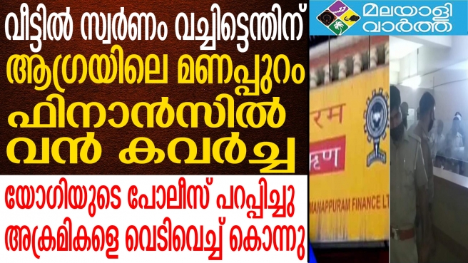 നിമിഷനേരം യുദ്ധക്കളമായി... മണപ്പുറം ഫിനാന്സിന്റെ യുപിയിലെ ആഗ്രയില് വന് കവര്ച്ച; 19 കിലോ സ്വര്ണവുമായി കടന്നുകളഞ്ഞ മോഷ്ടാക്കളുമായി ഏറ്റുമുട്ടി യുപി പോലീസ്; നീണ്ട പോരാട്ടത്തിനൊടുവില് അക്രമികളെ വെടിവെച്ച് കൊന്നു
