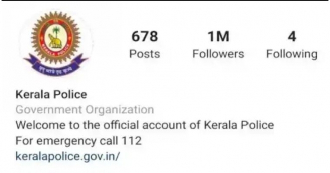 പത്തു ലക്ഷം ആരാധകരുള്ള ആദ്യത്തെ പൊലീസ് ഇന്സ്റ്റഗ്രാം അക്കൗണ്ടെന്ന അപൂര്വ നേട്ടവും കേരളാ പൊലീസിന് സ്വന്തം; മുംബൈ പൊലീസിനെയും ബംഗളുരു സിറ്റി പൊലീസിനെയും ബഹുദൂരം പിന്നിലാക്കി കേരള പൊലീസ്