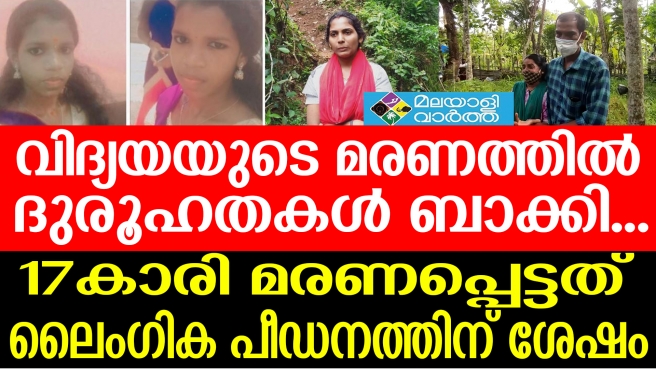 വിദ്യയയുടെ മരണത്തിൽ ദുരൂഹതകൾ ബാക്കി... 17കാരി മരണപ്പെട്ടത് ലൈംഗിക പീഡനത്തിന് ശേഷം....