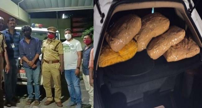 വെള്ളിയാഴ്ച രാത്രി പത്തു മണിയോടെയായിരുന്നു സംഭവം. ഓണംവിപണി ലക്ഷ്യമിട്ട് ജില്ലയിൽ വൻ തോതിൽ കഞ്ചാവ് എത്തിക്കുന്നതിനു ശ്രമം നടക്കുന്നതായി എക്സൈസ് കമ്മിഷണർ സ്ക്വാഡ് അംഗം എം.അസീസിന് രഹസ്യവിവരം ലഭിച്ചിരുന്നു. ഇതേ തുടർന്നായിരുന്നു പരിശോധന. എക്സൈസ് സംഘം ചങ്ങനാശേരി ഭാഗത്ത് വാഹന പരിശോധന നടത്തുന്നതിനിടെ, പ്രതി വാഹനത്തിൽ എത്തുകയായിരുന്നു. തുടർന്നു നടത്തിയ പരിശോധനയിലാണ് കാറിനുള്ളിൽ ഒളിപ്പിച്ച നിലയിൽ കഞ്ചാവ് കണ്ടെത്തിയത്.