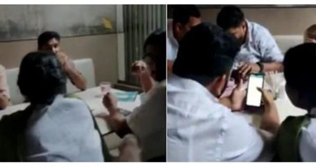 പാലക്കാട് നഗരത്തിലെ ഒരു ഹോട്ടലില് ഇവര് ഇരിക്കുന്നതിന്റെ ദൃശ്യങ്ങള് സാമൂഹ്യ മാധ്യമങ്ങളില് പ്രചരിക്കുന്നുണ്ട്. ഓണ്ലൈന് ഫുഡ് സര്വ്വീസ് നടത്തുന്ന ഡെലിവറി ബോയി ഇവരെ ചോദ്യം ചെയ്യുന്ന വീഡിയോയാണ് പുറത്ത് വന്നിട്ടുള്ളത്. വീഡിയോ എടുത്തയാളോട് യൂത്ത് കോണ്ഗ്രസ് നേതാവ് പാളയം പ്രദീപ് ക്ഷോഭിക്കുന്നതിന്റെ ദ്യശ്യങ്ങളും പ്രചരിക്കുന്നുണ്ട്.