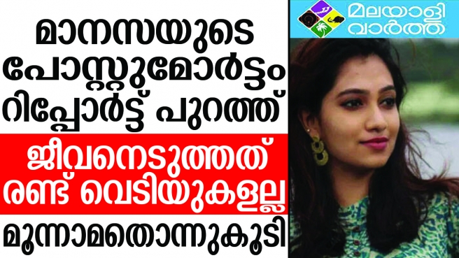ഡെന്റല് ഹൗസ് സര്ജന് മാനസയ്ക്കു മൂന്നു വെടിയേറ്റ സംഭവത്തില് വഴിത്തിരിവ്. മാനസയുടെ പോസ്റ്റ്മോര്ട്ടം റിപ്പോര്ട്ട് പുറത്ത് വന്നതോടെയാണ് എല്ലാം മാറി മറിഞ്ഞത് . തലയ്ക്കും വയറിനുമായിരുന്നു വെടിയേറ്റത്. ആദ്യഘട്ട പരിശോധനയിലും ഇന്ക്വസ്റ്റ് അനുസരിച്ചും രണ്ടു വെടിയുണ്ടകളേറ്റുവെന്നായിരുന്നു റിപ്പോര്ട്ട്.