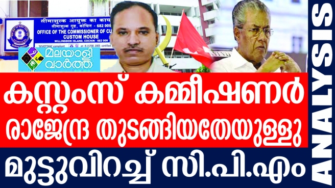 കസ്റ്റംസ് കമ്മീഷണര് രാജേന്ദ്ര തുടങ്ങിയതേയുള്ളു.... കസ്റ്റംസ് പ്രിവന്റീവ് കമ്മീഷണറായി ചുമതലയേറ്റ രാജേന്ദ്ര കുമാര് സി പി എമ്മിന്റെ മുട്ടു വിറപ്പിക്കും