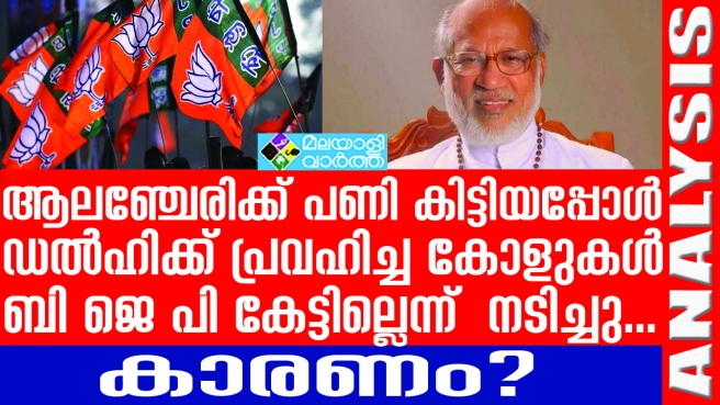 ക്രൈസ്തവ ഭൂരിപക്ഷ മേഖലകളില് ഇക്കഴിഞ്ഞ നിയമസഭാ തെരഞ്ഞടുപ്പില് വന്തോതില് ബി ജെ പിക്ക് തിരിച്ചടി കിട്ടിയതോടെയാണ് അവര് ജോര്ജ് ആലഞ്ചേരി അടക്കമുള്ള മെത്രാന്മാരുടെ തനി സ്വഭാവം മനസിലാക്കിയത്. പ്രധാനമന്ത്രിയെ വരെ കണ്ട് പിന്തുണ പ്രഖ്യാപിച്ച ശേഷമാണ് സഭകള് തങ്ങളുടെ വോട്ട് ഇടത് - വലത് മുന്നണികള്ക്ക് മറിച്ചത്.