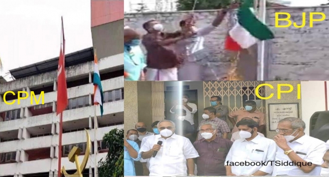 ഇക്കൂട്ടത്തിൽ സിപിഎം, സിപിഐ, ബിജെപി പാർട്ടികളുടെ ആഘോഷങ്ങളും ഉൾപ്പെടുന്നുണ്ട്. ദേശീയപതാക ഉയര്ത്തിയതില് ബിജെപിക്ക് പറ്റിയത് വൻ അബദ്ധമാണ്. സംസ്ഥാന കമ്മിറ്റി ഓഫിസില് പാർട്ടി അധ്യക്ഷൻ കെ.സുരേന്ദ്രൻ ആദ്യം പതാക ഉയര്ത്തിയത് തലതിരിഞ്ഞായിരുന്നു. അബദ്ധം മനസ്സിലായ ഉടന് അത് തിരുത്തുകയും ചെയ്തു.